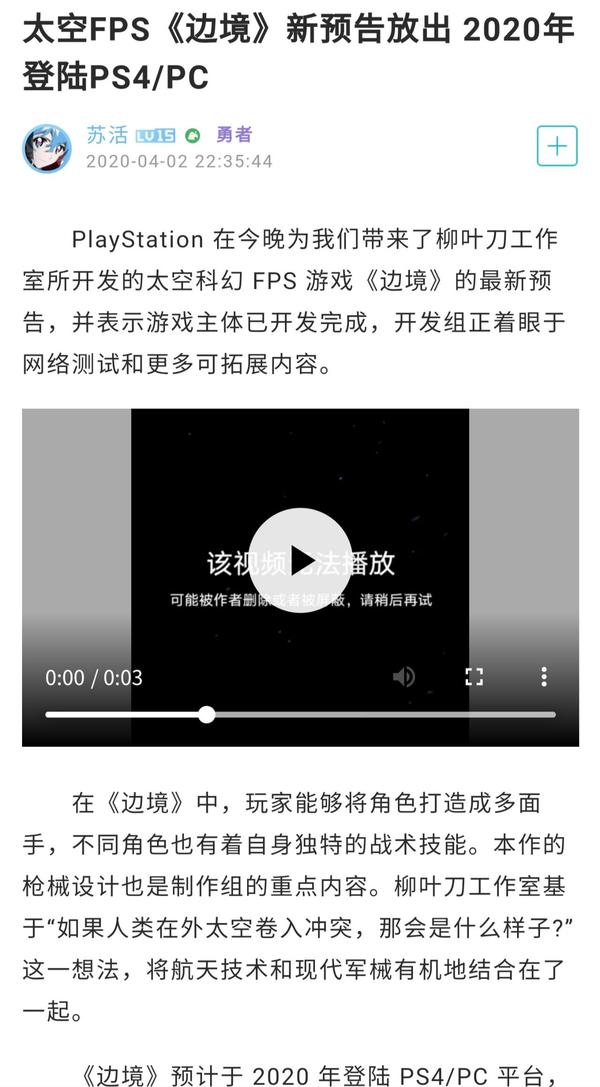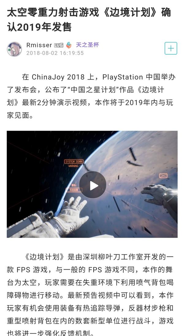 印象里大概2017还是2018年开始有几个游戏是高频同稿出现的,《失落之魂》《代号硬核》《边境计划》等等,是索尼「中国之星」计划的部分。